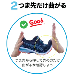 次に大切なのは「つま先部分で曲がる靴」を選ぶことです。靴を手で曲げてみたときに、靴底のつま先寄りでしっかり曲がるか確認してみましょう。