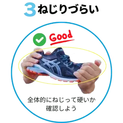 最後に見ていただきたいのが「靴のねじれやすさ」です。靴を両手で持って、ひねってみてください。簡単にクネクネとねじれてしまう靴は避けましょう。