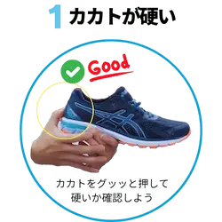 まず一番大切なのが「踵(ヒールカウンター)」の部分がしっかりと硬い靴を選ぶことです。靴の踵を指で押したときに、簡単にグニャっと潰れてしまうような靴は要注意です。